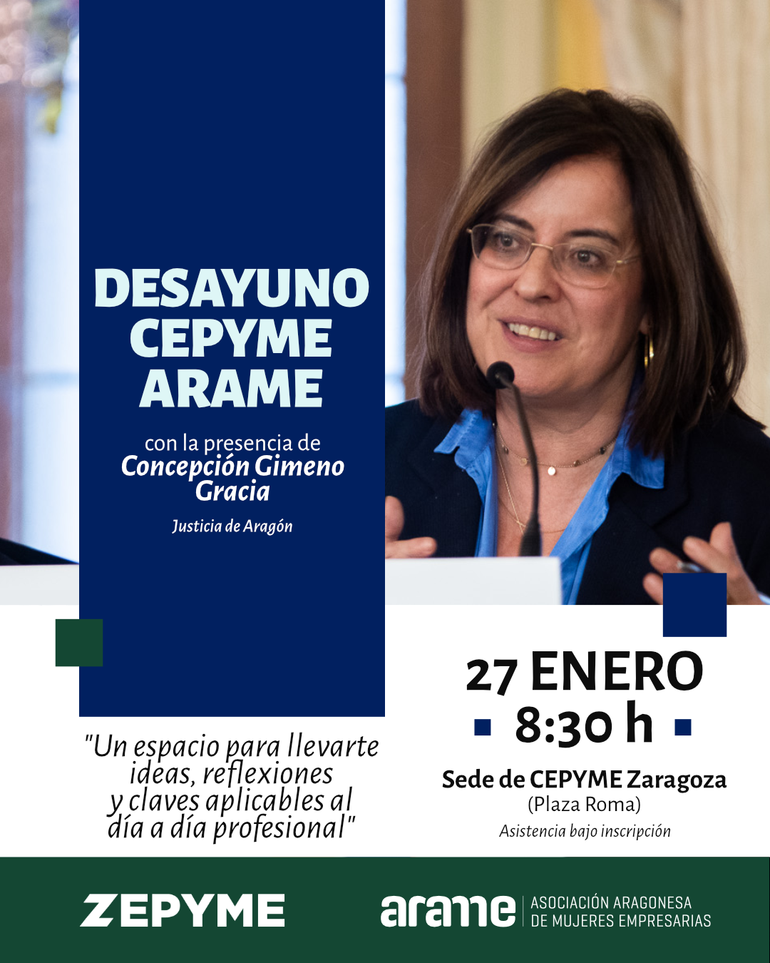La cita será el martes 27 de enero, a las 8:30 h en el salón de actos de CEPYME, en una desayuno empresarial que cuenta con el patrocinio de EBOCA, empresa referente aragonesa.
